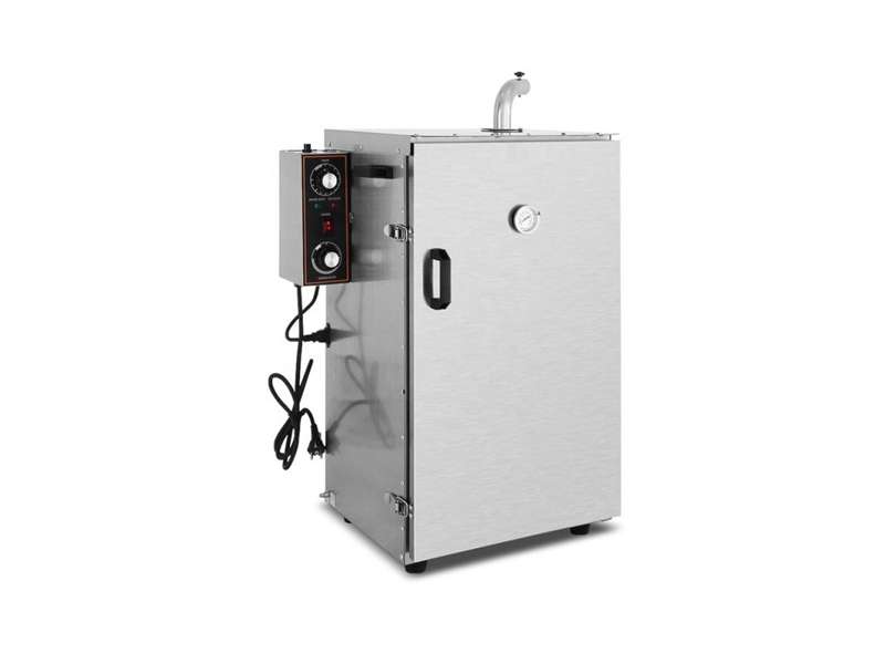 Ο ειδικός φούρνος-καπνιστήρι 'Food Smoker΄μπορεί να ολοκληρώσει δύο εργασίες ταυτόχρονα: μπορεί να προετοιμάσει το κρέας για μακρά συντήρηση αλλά και να του δώσει μια μοναδική γεύση σύμφωνα με τα συστατικά και την επεξεργασία του. Το καπνιστό φαγητό έχει ωραίο χρώμα και γεύση και αυτή η μέθοδος αντικαθιστά πλήρως την παραδοσιακή μέθοδο καπνίσματος. Η αντιοξειδωτική κατασκευή του φούρνου ανοξείδωτου 201 εξασφαλίζει μεγαλύτερη διάρκεια ζωής. Ο σωλήνας θέρμανσης από ανοξείδωτο ατσάλι παρέχει πιο γρήγορη θέρμανση. Η καμπίνα είναι μονωμένη για να αποτρέπει την απαγωγή θερμότητας. Ο σωλήνας εξάτμισης καπνού βρίσκεται στο πάνω μέρος του μηχανήματος. Όταν ανοίγει, ο ατμός και ο καπνός μπορούν να διαφύγουν. Κατασκευή από ανοξείδωτο ατσάλι με ρυθμιζόμενη θερμοκρασία και χρονοδιακόπτη. Ιδανικό για καπνιστά λουκάνικα, κρεας, ψάρια κ.α. Απαραίτητο για τα ξενοδοχεία, τα εστιατόρια και κάθε επαγγελματική κουζίνα.