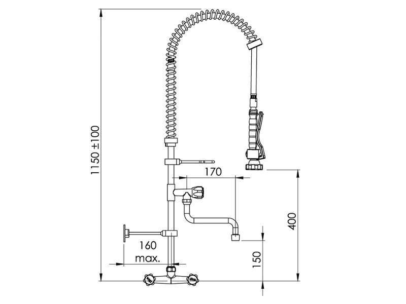 Καταιωνιστήρας επιτοίχιος 2 οπών με βρύση