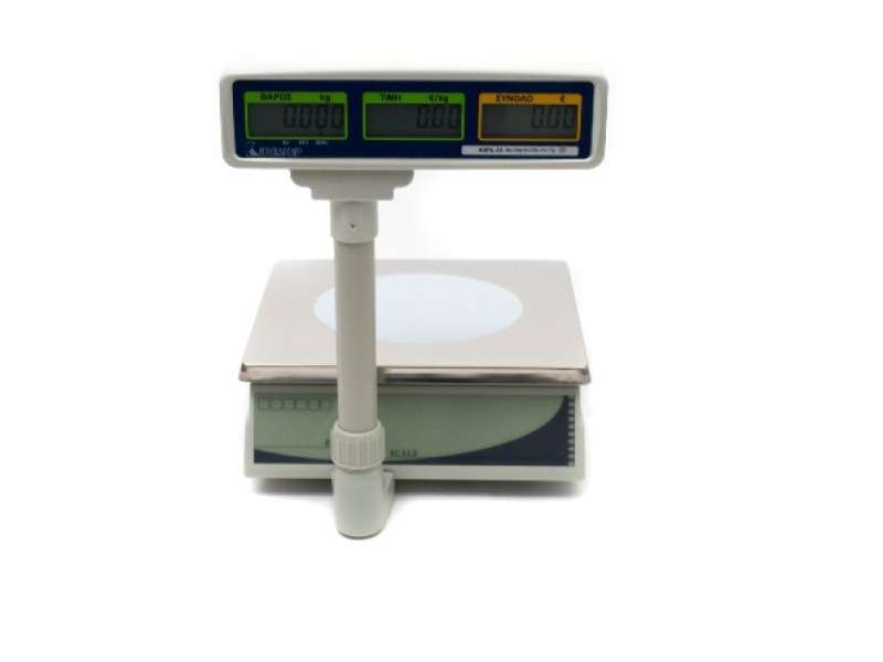 Οθόνη ζυγούΤριών ενδείξεων φωτιζόμενη οθόνη LCD για τον χειριστή και τον πελάτη. Κάθε ένδειξη 6 ψηφία.