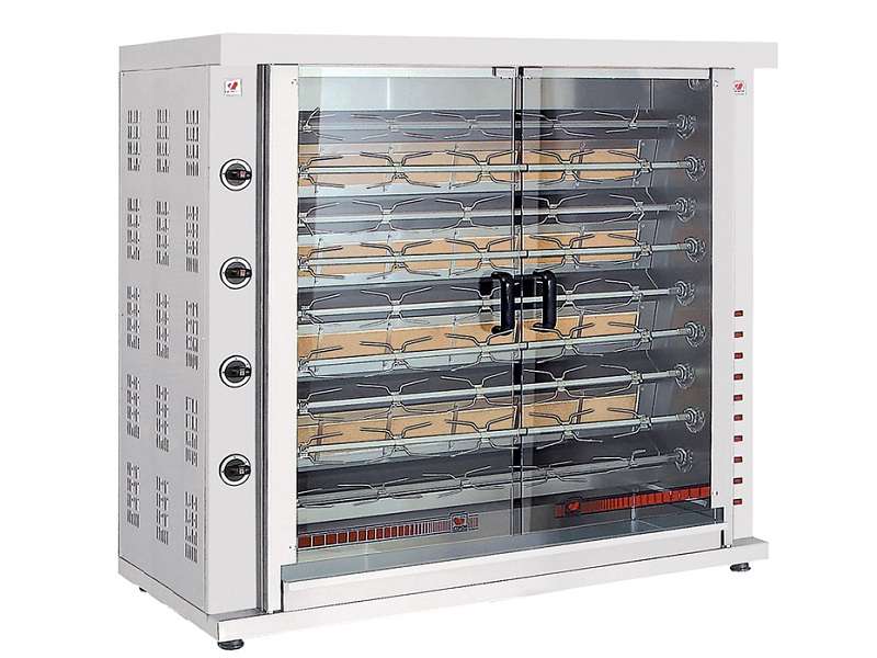 Επιτραπέζια κοτοπουλιέρα υγραερίου με 9 σούβλες.Μήκος σούβλας: 103 cm