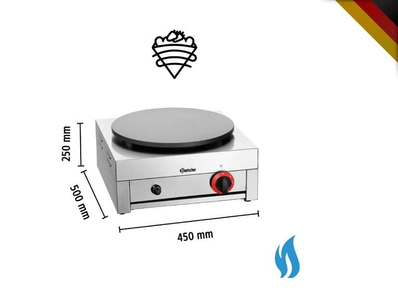 Η πλάκα κρέπας από μαντέμι αποτελεί την καλύτερη προϋπόθεση για την επίτευξη μιας πολύ λεπτής και ζουμερής κρέπας με ελαφρώς ροδισμένο χρώμα. Με τη βοήθεια του πολύ εύκολου χειρισμού που διαθέτει μπορείτε να φτιάξετε κρέπες στην επιστρωμένη πλάκα μεγέθους 40 cm σε 2 διαφορετικές βαθμίδες απόδοσης.