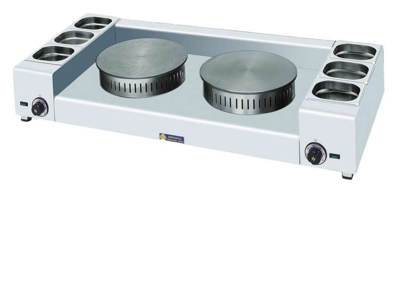 Αυτή η σειρά από ηλεκτρικές κρεπιέρες αποτελείται από δυο μοντέλα που φέρουν μια ή δυο εστίες διαμέτρου 35 cm. Κάθε εστία θερμαίνεται από ανεξάρτητη αντίσταση 2,5 kw η οποία ελέγχεται από δικό της ανεξάρτητο θερμοστάτη ενώ διαθέτει ενδεικτική λυχνία για την επιτήρηση της λειτουργίας της.
