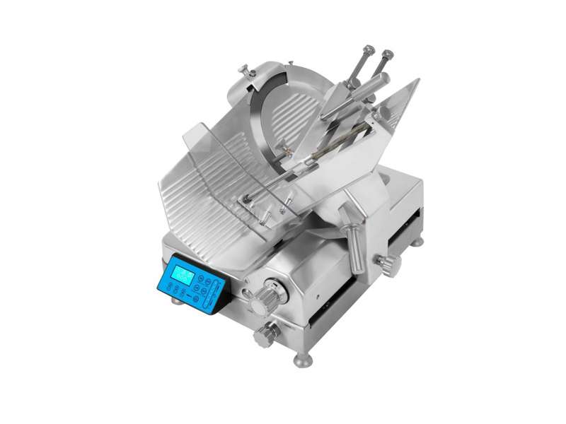 | Επιπλέον χαρακτηριστικά ζαμπονομηχανής | Πληκτρολόγιο αφής, οθόνη LCD και backlight, από ανοδιωμένο αλουμίνιο και ανοξείδωτο χάλυβα AISI 304, ενσωματωμένο ακονιστήρι με ειδικό προφυλακτήρα που “κρύβει” τη λεπίδα του μαχαιριού κατά τη λειτουργία, πρόσθετα μπράτσα σαργιού για συγκράτηση προϊόντων από το χειριστή. Ρυθμιστής διαδρομής της πλατφόρμας από 34-46 φέτες/λεπτό (αργό-γρήγορο). Εύκολος καθαρισμός, μεταλλικός προφυλακτήρας σαργιού και μαχαιριού, προστατευτικό κάλυμμα του κινητήρα και του ρελέ. Ηλεκτρικός μετρητής που κόβει αυτόματα των αριθμό των φετών με φυσική βαρύτητα. Δύο κινητήρες, ένα για την περιστροφή του μαχαιρίου και ένα για την κίνηση της πλατφόρμας. Ρυθμιστής πάχους φέτας, διακόπτης ON-OFF με ρελέ ασφαλείας. |