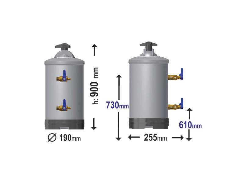 Αφαλατώνει 4200 lt νερού σε τιμές σκληρότητας: 20of, 11od, 200 ppm CaCo3