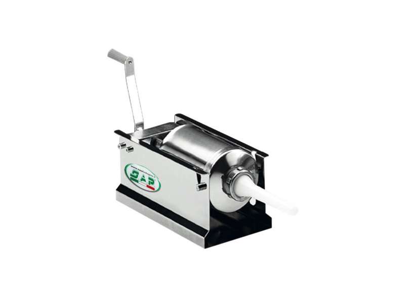 Γεμιστικό λουκάνικου διαθέσιμο σε 3 διαφορετικά μεγέθη, 3 λίτρων, 5 λίτρων, 8 λίτρων. Εξαιρετικό χειροκίνητο γεμιστικό λουκάνικου, ιδανικό για οικιακή χρήση, μικρό κρεοπωλείο και Deli's. Το γεμιστικό λουκάνικο έχει σχεδιαστεί και κατασκευαστεί στην Ιταλία. Δημιουργεί όλα τα λουκάνικα με ένα ασφαλεί και υγιεινά υλικά. Περιλαμβάνει 4 πλαστικές χοάνες διαφορετικού μεγέθους για κάθε είδος προϊόντος που πρόκειται να δημιουργηθεί. Τα μεγέθη είναι 10,50mm, 19,50mm, 25mm & 34,50mm. LT3 1 ταχύτητα, LT5 2 ταχύτητες, LT8 2 ταχύτητες.