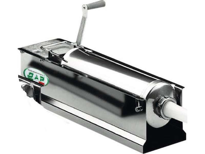 Γεμιστικό λουκάνικου διαθέσιμο σε 3 διαφορετικά μεγέθη, 3 λίτρων, 5 λίτρων, 8 λίτρων. Εξαιρετικό χειροκίνητο γεμιστικό λουκάνικου, ιδανικό για οικιακή χρήση, μικρό κρεοπωλείο και Deli's. Το γεμιστικό λουκάνικο έχει σχεδιαστεί και κατασκευαστεί στην Ιταλία. Δημιουργεί όλα τα λουκάνικα με ένα ασφαλεί και υγιεινά υλικά. Περιλαμβάνει 4 πλαστικές χοάνες διαφορετικού μεγέθους για κάθε είδος προϊόντος που πρόκειται να δημιουργηθεί. Τα μεγέθη είναι 10,50mm, 19,50mm, 25mm & 34,50mm. LT3 1 ταχύτητα, LT5 2 ταχύτητες, LT8 2 ταχύτητες.