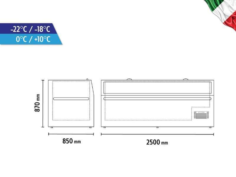 Βούτα μέσης / πλάτης , με την δυνατότητα λειτουργίας τόσο ως κατάψυξη (-22°C/-18°C) όσο και συντήρησης (0°C/+10°C). Με αυτόματη απόψυξη (hot gas) και χωρητικότητα 1105 lt.