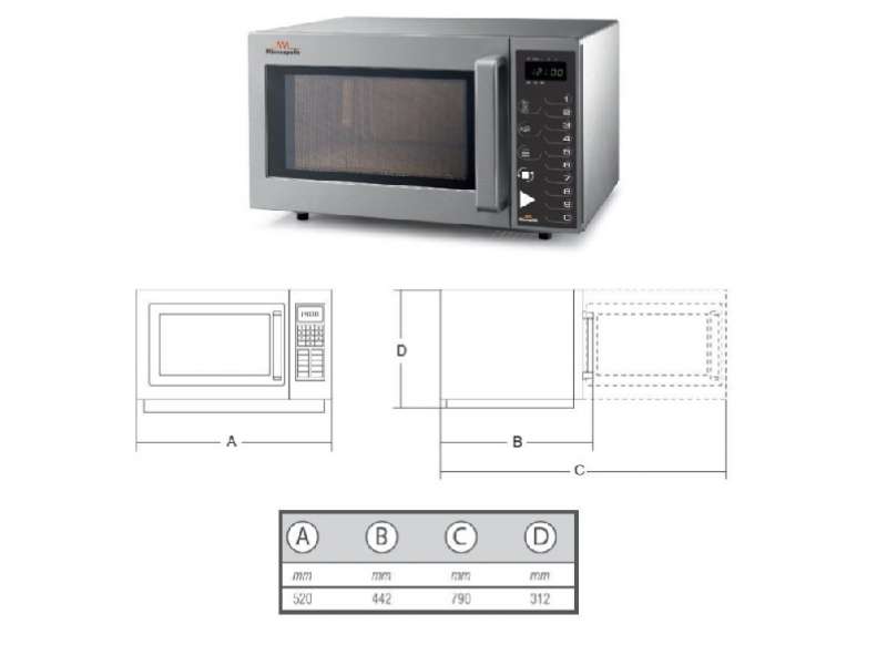 Ο φούρνος μικροκυμάτων MD 1000 διαθέτει ψηφιακό πάνελ με οθόνη και 9 επίπεδα ισχύος. Είναι κατασκευασμένος από ανοξείδωτο ατσάλι με κεραμική βάση τοποθέτησης τροφίμων και διάφανη πόρτα με χερούλι.