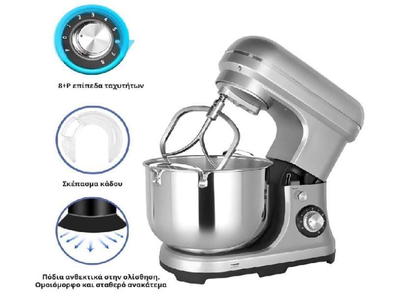 Κατασκευασμένο από ειδικό κράμα αλουμινίου, πολύ σταθερή και βαριά κατασκευή με κάδο από inox. Διαθέτει ρελέ ασφαλείας για την προστασία του χειριστή και διακόπτη με ένδειξη για χρήση γάτζου ή σύρματος ή φτυαριού. Πολύ εύκολο, ασφαλές και αξιόπιστο επαγγελματικό μηχάνημα. Η κίνηση μεταδίδεται με ιμάντα και γρανάζια. Με ρυθμιστή στροφών και 8 ταχύτητες που δεν αλλάζουν κατά τη διάρκεια λειτουργίας. Κρέμα ανάμιξης 1,5Kg. Συνοδεύεται απο φτυάρι, γάτζο, σύρμα.