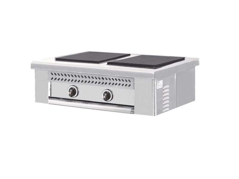Ηλεκτρική κουζίνα δύο εστιών ρεύματος 30 x 30 cm και συρτάρι περισυλλογής.