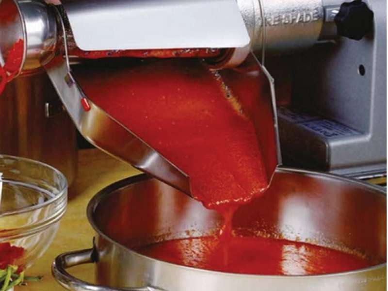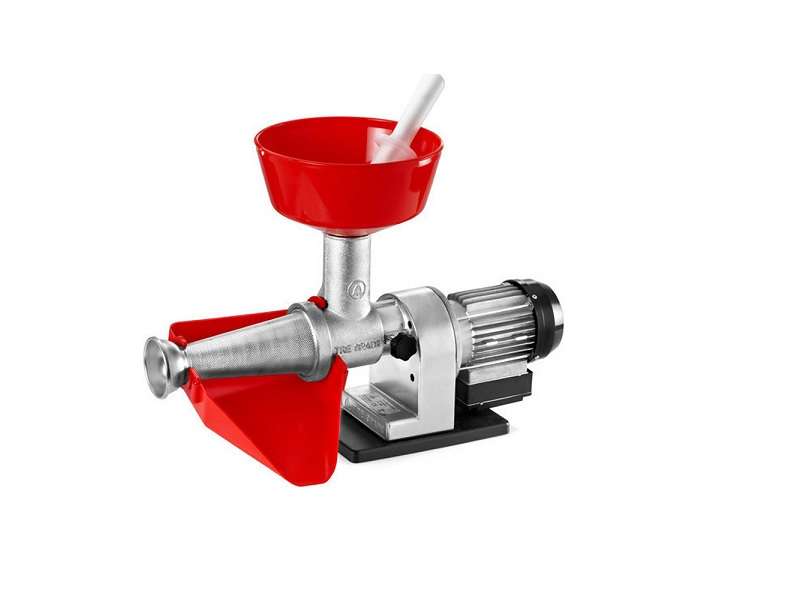 Πλαστική χοάνη και συλλέκτης. Φίλτρο από ανοξείδωτο ατσάλι. Σώμα και τρυπάνι απο χυτοσίδερο. Βάση από αντιολισθητικό κυψελωτό υλικό. Αποσυναρμολογείται εύκολα για γρήγορο καθάρισμα. Ιδανικό για την παρασκευή σάλτσας ντομάτας και μαρμελάδων.