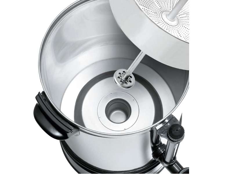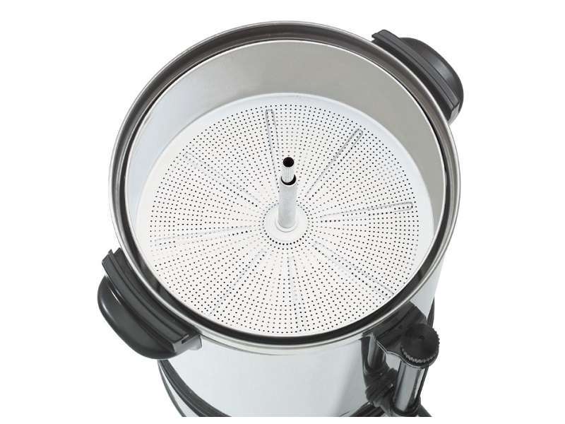 Το Percolator Regina Plus 90 ετοιμάζει έως και 15 λίτρα καφέ φίλτρου σε 60 λεπτά. Η μηχανή αυτή του καφέ θα σας πείσει με χαρακτηριστικά όπως η ένδειξη καθαρισμού από άλατα, η ένδειξη στάθμης πλήρωσης και η λειτουργία διατήρησης θερμότητας με βελτιστοποιημένο θερμαντικό κοίλωμα από ανοξείδωτο χάλυβα.