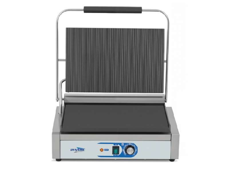 Επαγγελματική τοστιέρα της εταιρείας Dynamic με πάνω ραβδωτη και κάτω λεία πλάκα.