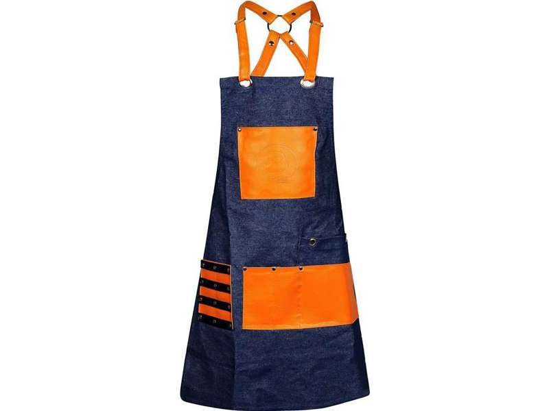Ποδιά μπροστέλα, υφασμάτινη 100% Cotton, 58x80cm, Μπλε Τζιν/Πορτοκαλί δερματίνη, XP Bar.