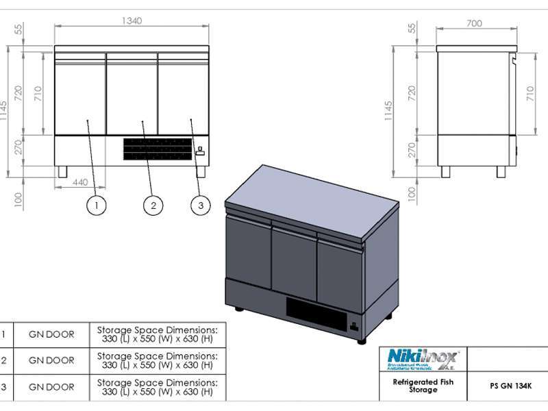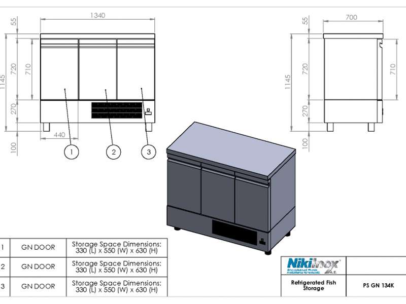 Όλα τα ψυγεία ψαριών, έχουν αποχετεύεις, μόνωση πολυουρεθάνης, 1 σχάρα σε κάθε πόρτα, κουμπωτά μαγνητικά λάστιχα και ηλεκτρονικό θερμοστάτη με δυνατότητα αυτόματης απόψυξης.
