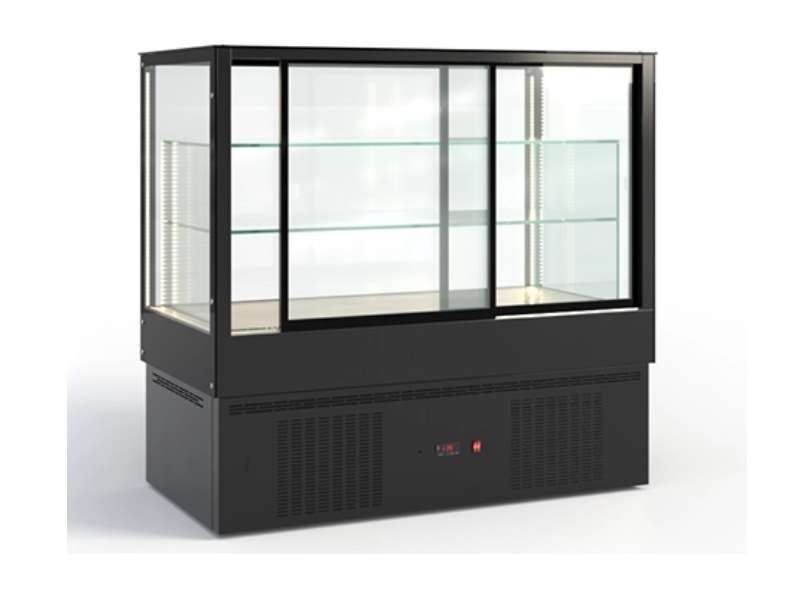 Επαγγελματικό ψυγείο βιτρίνα IRIS με κυκλοφορία αέρα μαύρη με 2 γυάλινα ράφια εσωτερικά και μαύρη βαφή περιμετρικά της βιτρίνας.