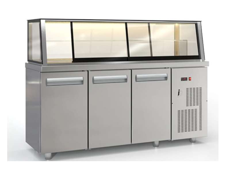 Επαγγελματικό ψυγείο βιτρίνα PANINI συντήρηση με 3 πόρτες και μηχανή από ανοξείδωτο χάλυβα.