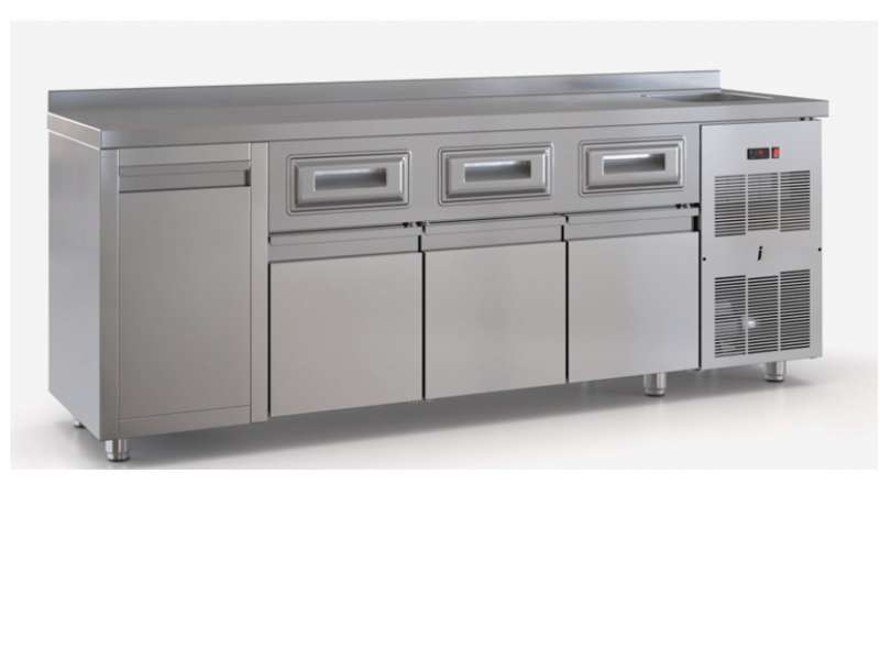 Στο κάτω μέρος υπάρχει ψυχόμενος χώρος για την αποθήκευση του γάλακτος. Προσφέρεται με συρτάρια με ιταλικούς τηλεσκοπικούς οδηγούς compex ή πόρτες.