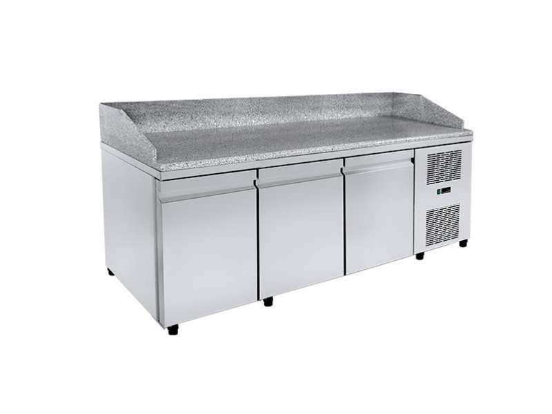 Πάγκος συντήρηση για προετοιμασία πίτσας πλάτους 80εκ., με φαρδιές πόρτες για ταψιά 60Χ40 .1 σχάρα σε κάθε πόρτα, κουμπωτά μαγνητικά λάστιχα και ηλεκτρονικό θερμοστάτη με δυνατότητα αυτόματης απόψυξης.