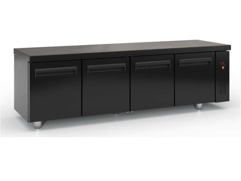 Επαγγελματικό ψυγείο πάγκος συντήρηση μαύρο με 4 πόρτες χωρίς μηχανή.