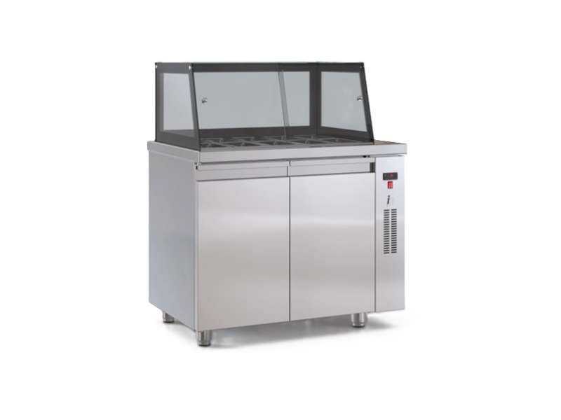 Επαγγελματικό ψυγείο salad bar συντήρηση με 2 πόρτες από ανοξείδωτο χάλυβα χωρίς μηχανή.