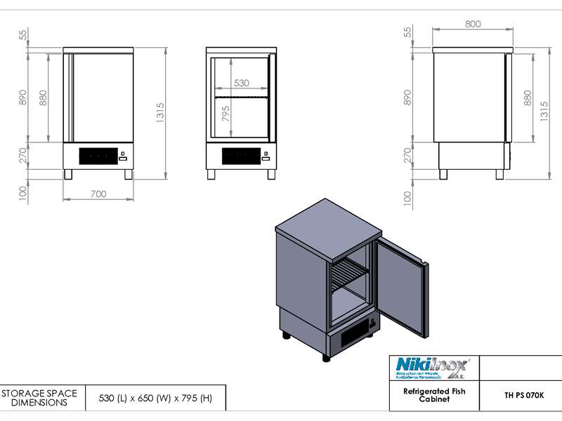 Όλα τα ψυγεία ψαριών, έχουν αποχετεύεις, μόνωση πολυουρεθάνης, 3 σχάρες σε κάθε πόρτα, κουμπωτά μαγνητικά λάστιχα και ηλεκτρονικό θερμοστάτη με δυνατότητα αυτόματης απόψυξης.
