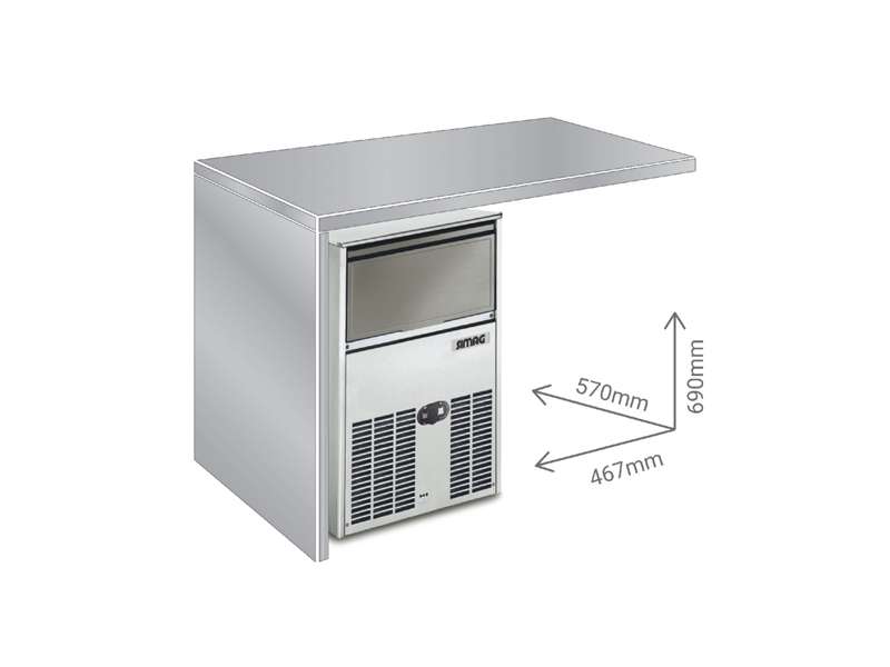 Παγομηχανή ψεκασμού Simag , ημερήσιας παραγωγής 40Kg & ενσωματωμένη αποθήκη 15kg , με παγάκι Gourmet medium , του εργοστασίου Scotsman Ice S.R.L Ιταλίας.