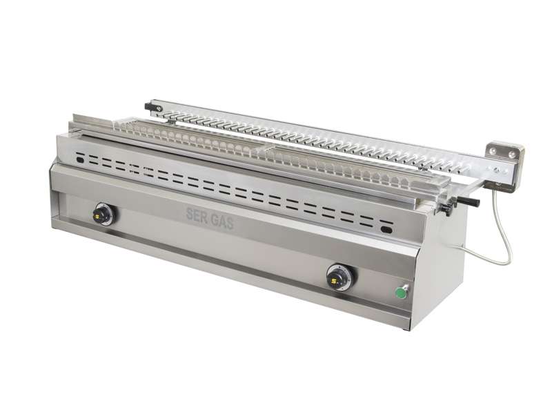 Σχαριέρα υγραερίου με λιποσυλλέκτη νερού σε ένα επίπεδo, που προσφέρει την δυνατότητα αυτόματης περιστροφής των ψητών τα οποία τοποθετούνται σε καλαμάκι (σουβλάκι,λουκάνικο,κεμπάπ).Με αυτόν τον τρόπο επιτυγχάνεται ομοιόμορφο ψήσιμο, χωρίς να “στεγνώνει” το κρέας(λόγω και της παρουσίας νερού στο συρτάρι) και φυσικά ελαχιστοποιείτε ο χρόνος επιτήρησης.
