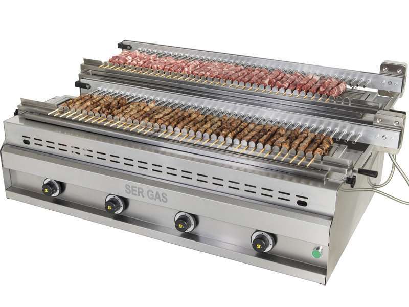Σε περίπτωση που ο χρήστης θελήσει να ψήσει άλλου είδους κρέατα(μπιφτέκια,μπριζόλες,πανσέτες κτλ) ο μηχανισμός ανασηκώνεται και τοποθετούνται στην σχάρα. Διαθέτει μπουτόν ηλεκτρονικά ελεγχόμενης ανάφλεξης και η ισχύς των καυστήρων ρυθμίζετε ανάλογα με τις ανάγκες του χρήστη μέσω διακοπτών ασφαλείας και θερμοκόπιας.Η συσκευή δύο επιπέδων, συμπεριλαμβάνει μηχανισμό 77 θέσεων.