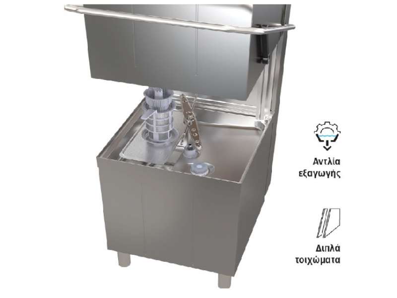 Πλυντήριο ποτηριών-πιάτων για καλάθι 50x50cm με αντλία απόπλυσης, της σειράς easyline του Ιταλικού εργοστασίου Smeg.