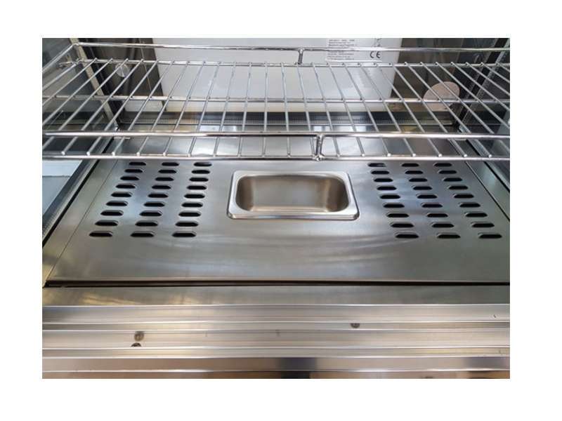 Θερμαινόμενη βιτρίνα με χωρητικότητα 120 λίτρα και ισχύ 450Watt. Είναι ιδανική επιλογή για φούρνους, ζαχαροπλαστεία αλλά και καφέ ώστε να διατηρούνται ζεστά τα σφολιατοειδή, οι τυρόπιτες και άλλα προϊόντα. Διαθέτει 3 επίπεδα ώστε να τοποθετούνται ξεχωριστά και ομαδοποιημένα τα διαφορετικά είδη τροφίμων. Λειτουργεί σε θερμοκρασίες από 30°C έως 90°C. Τοποθετείται εύκολα πάνω σε πάγκο.